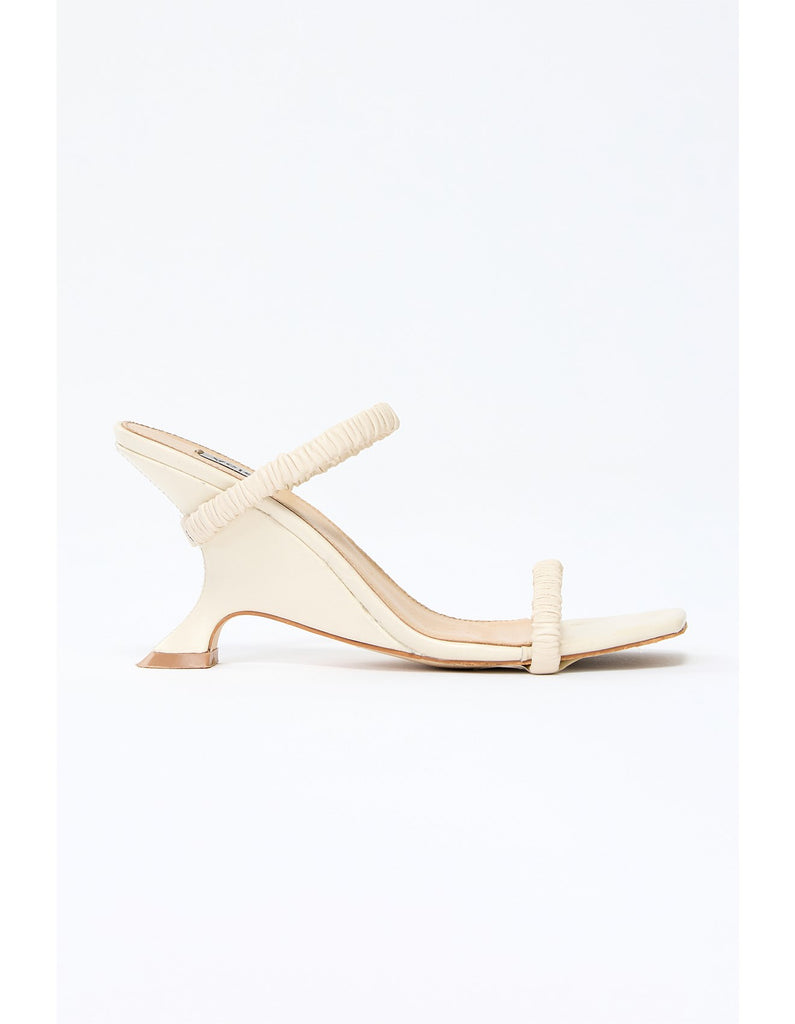 The Hanwright Wedge in Vanilla is a fresh take on the classic wedge, bringing a contemporary edge to event dressing. Crafted from a smooth leather, this sleek silhouette features elasticised ruched straps that add texture and dimension. A refined choice designed to complement both day-to-night outfitting.