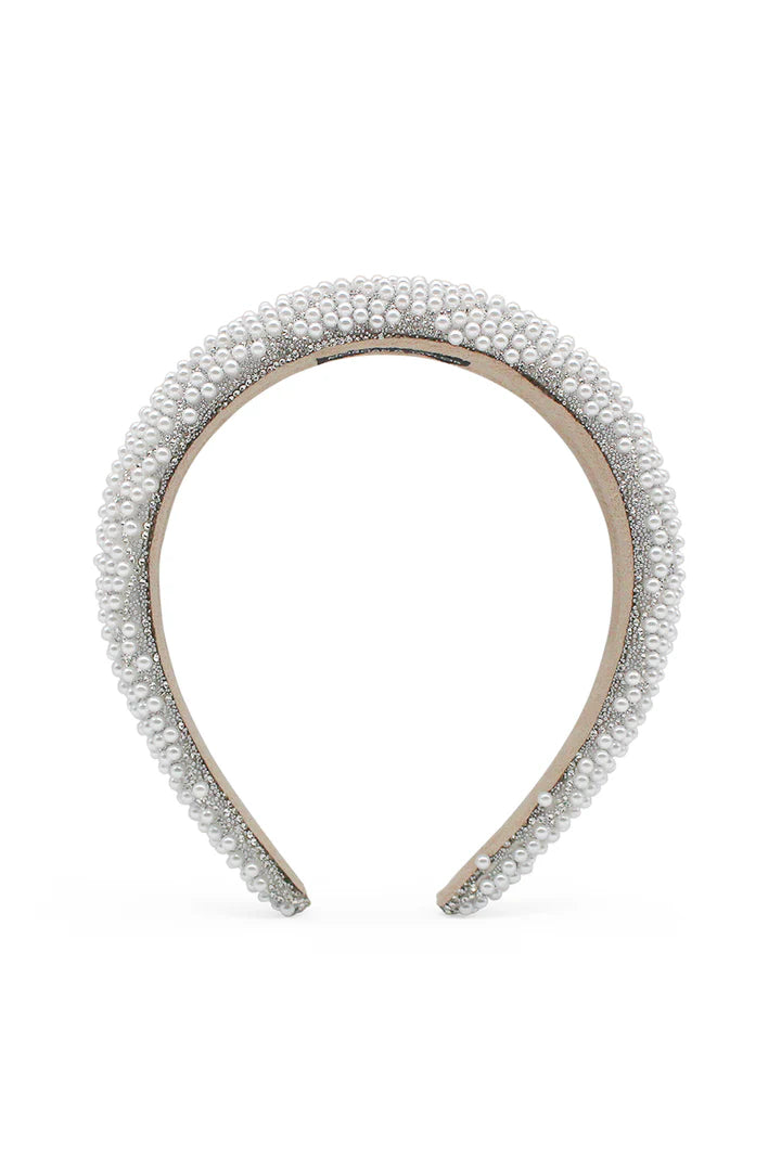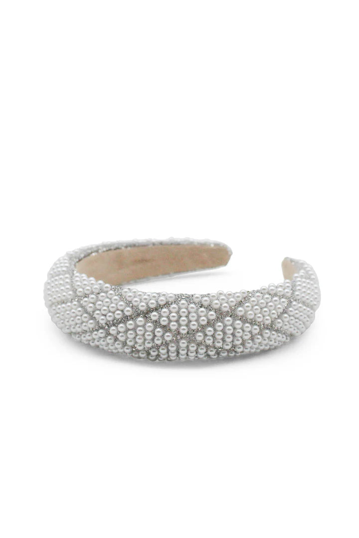 The Morgan & Taylor Cara Headband in Pearl is a padded headband, embellished with pearl detailing. Perfect for adding a chic edge to an event look, and can be stacked with hair clips or a veil for additional detailing or drama.