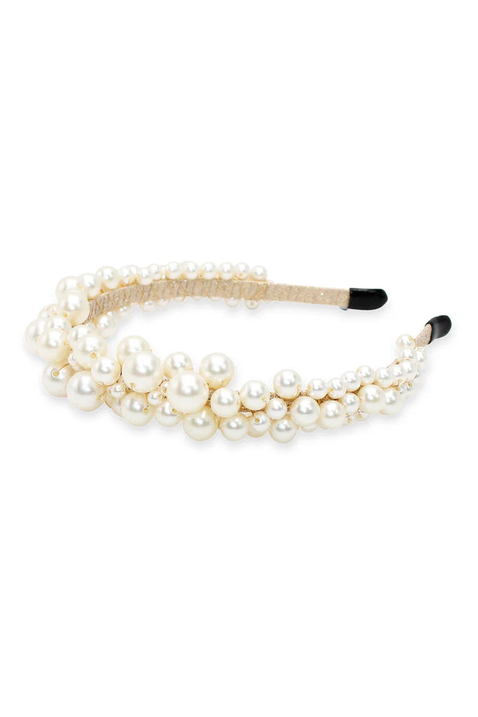 The Rochelle Beaded Headband in Pearl is crafted with layered faux pearls to create the perfect crowning statement headpiece.