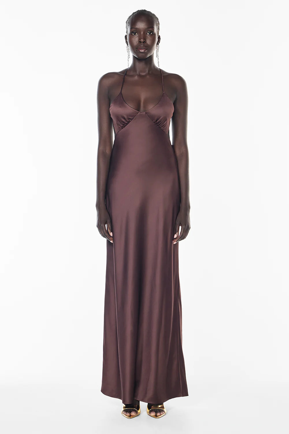 The Saturation Point Slip Dress in Mocha offers an elegant silhouette for your next formal occasion. Featuring a V-neckline with slinky adjustable straps and a cowl back creating an elongated & graceful silhouette. This maxi dress is crafted from luxurious satin with a subtle sheen.